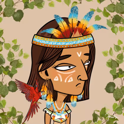 Collection Depressed Citizens Artist Juls Description ART. No team, no project, no future. Depressed Citizens is an urban & existential Art expression on Ordinals. In a parallel universe, "THEI" control us. DC unites against toxic society, encouraging critical thinking. 100% hand made collection that took Juls more than 6 months of daily work. Name Citizen#2420 Origin Native Gender Woman Necklace Rock feather necklace Hat Colorful feather headdress Mustache Beard No beard Glasses No Glasses Earrings Ball earrings trio Hair Style Short straight Clothes White linen crop top Tattoo No Tattoo Star Background Without stars